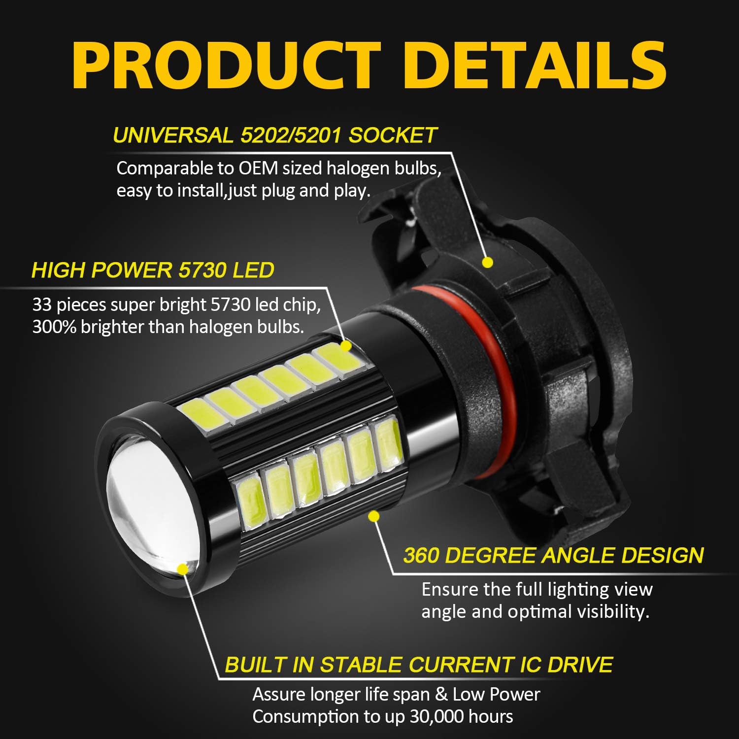 AUXLIGHT 2504 PSX24W 12276 LED Fog Light Bulbs 6000K Xenon White, Super Bright 2800 Lumens 33-SMD Chips LED Daytime Running Lights DRL Bulbs Replacement for Cars, Trucks (Pack of 2)