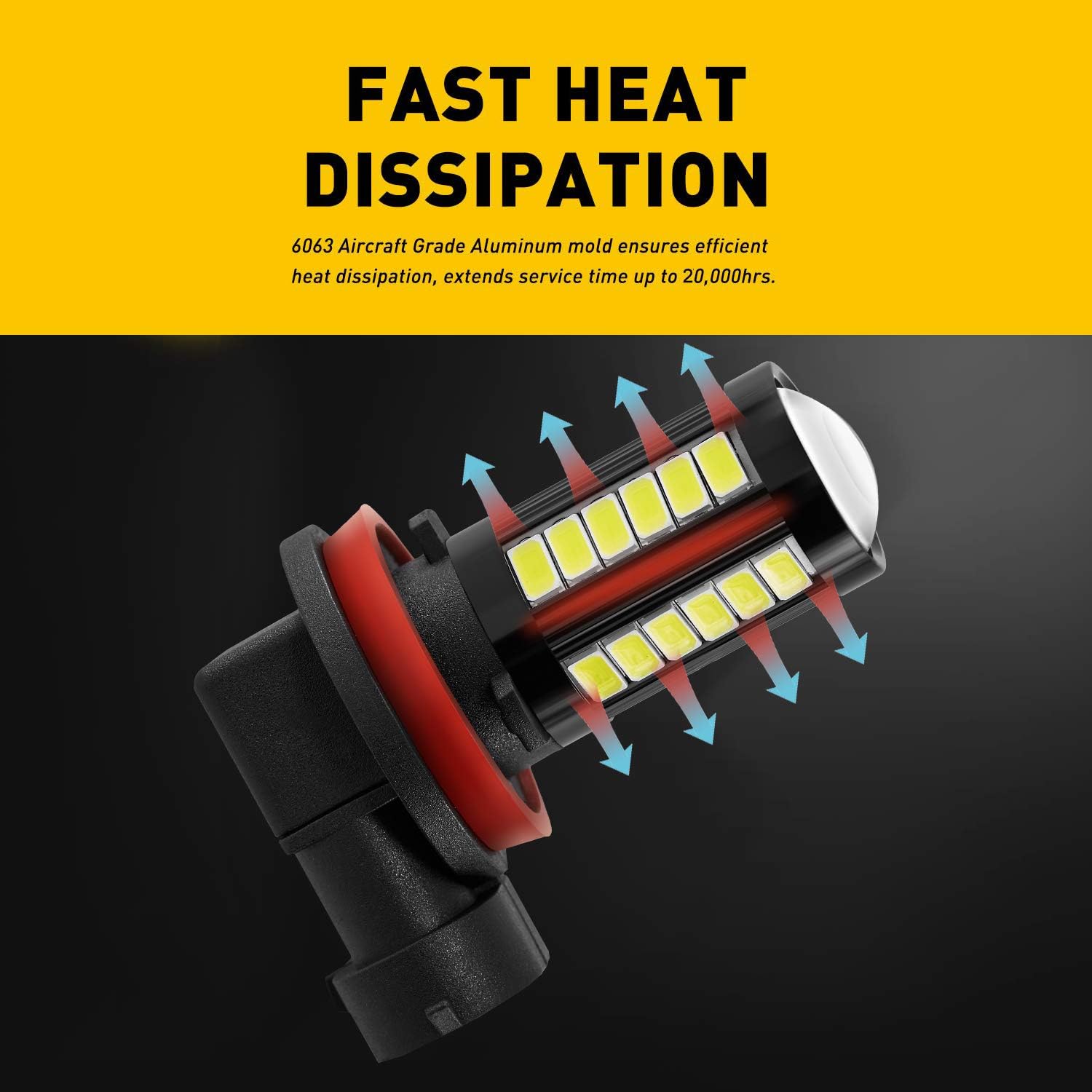 • ▼Stable current and good cooling for longer lifespan: Built-in intelligent IC driver provides stable current and short circuit protection. Aviation aluminum housing provides better heat dissipation. Steady working current with secure using temperature makes the bulbs have a longer lifespan up to 50000 hours.