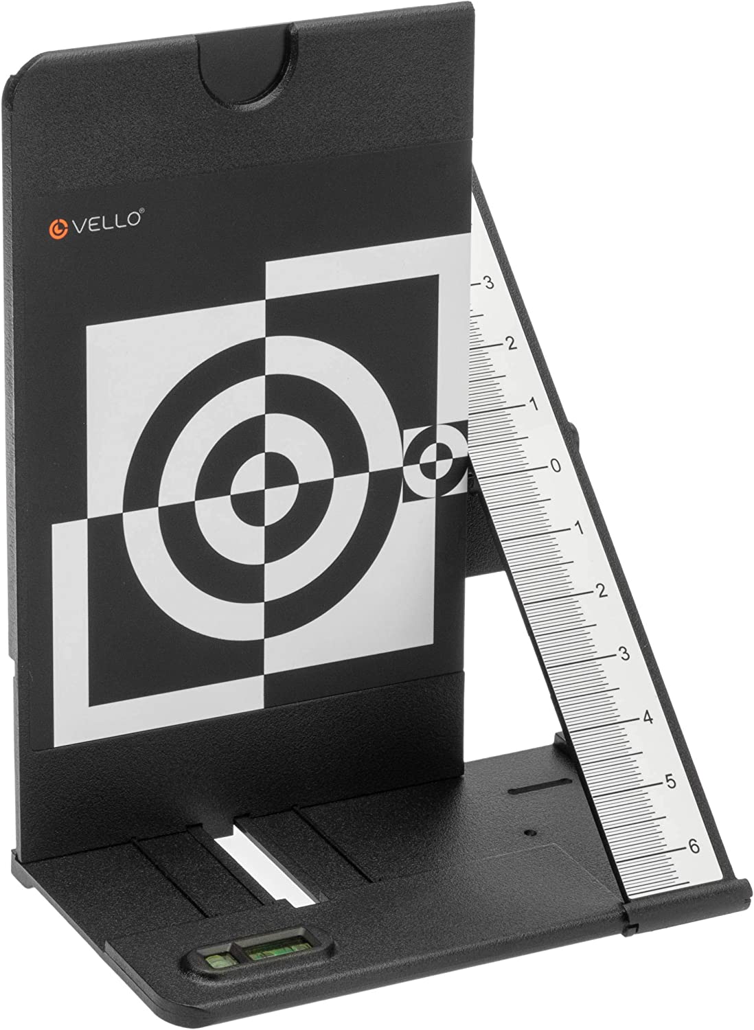 The Vello LENS-2020 Lens Calibration Tool sets up quickly onto a tripod through its 1/4"-20 tripod mounting socket and can level out using the two-way bubble level at the base of the target. With this tool, you can test your camera's auto focus accuracy and then calibrate the focus system to correct for any front-or back-focusing issues. After the adjustment is saved within the camera as a lens profile, it can be used for future photo sessions. The included gray card helps you to set custom white balance for true colors, and the target folds flat for easy storage and portability.