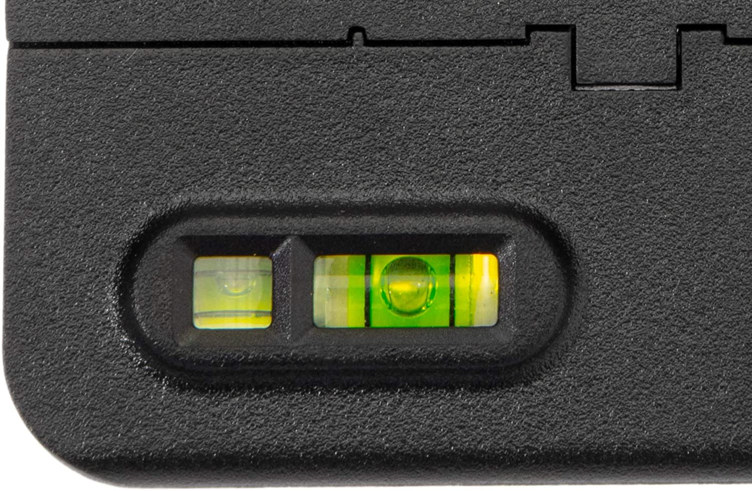 The target mounts to a tripod through its 1/4" mounting socket, and you can level it out with the two-way bubble level located at the base