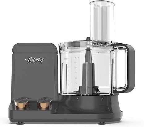 NutriChef Food Processor 2 Liter Capacity - Multipurpose & Ultra Quiet Powerful Motor - Includes 6 Attachment Blades - 12 Cup Capacity - Pre-Set Speed For Easy Use - Black Chrome & Space Gray