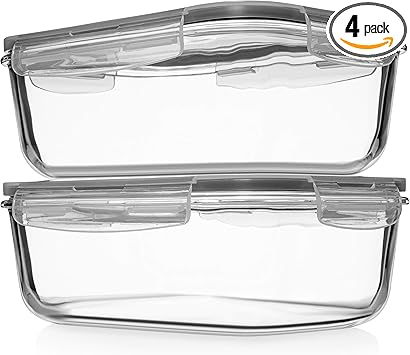 8 Cups/ 63 Oz 4 Piece (2 containers + 2 Lids) Large Glass Storage/ Baking Containers with Locking Lids . Ideal for Storing food, vegetables or fruits. BPA Free & Leak Proof - Microwave, Oven Safe