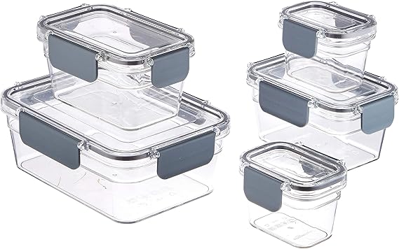 Amazon Basics Tritan Plastic Locking Food Storage Container, 10 Pieces, 5 Containers With 5 Lids, Clear