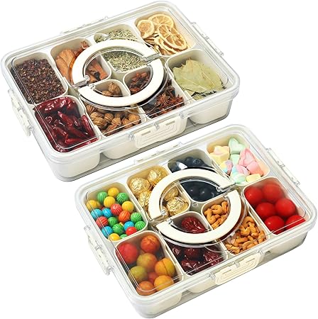 Divided Serving Tray with Lid and Handle, 2Pcs Snack Containers Travel Snackle Box Clear Organizer Food Storage Fresh-keeping Box for Candy Fruits Nuts Snacks, BPA Free
