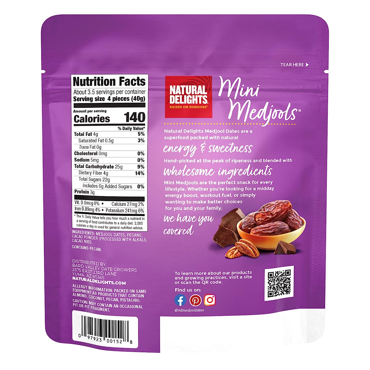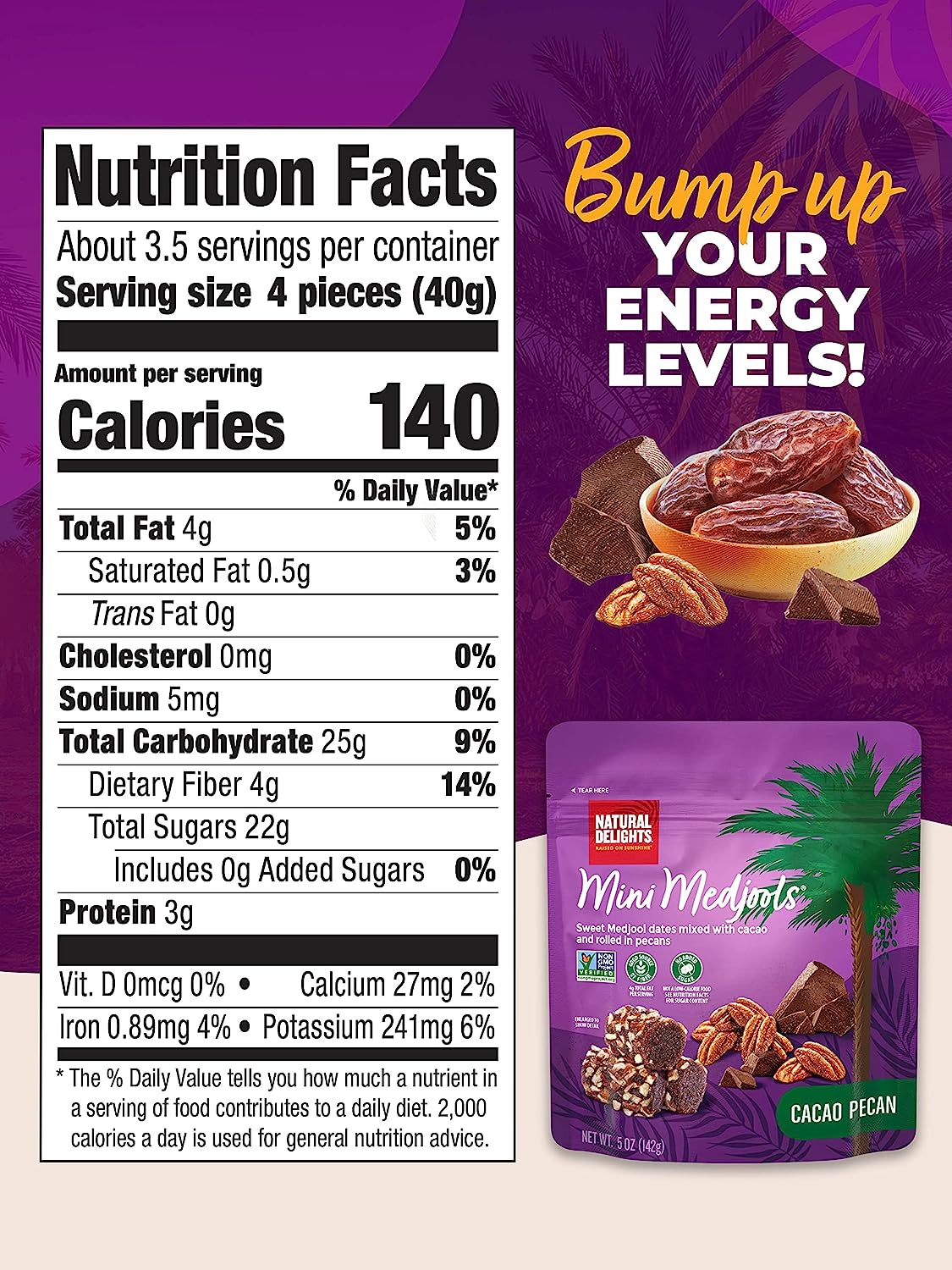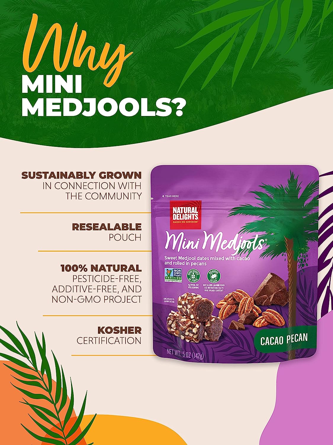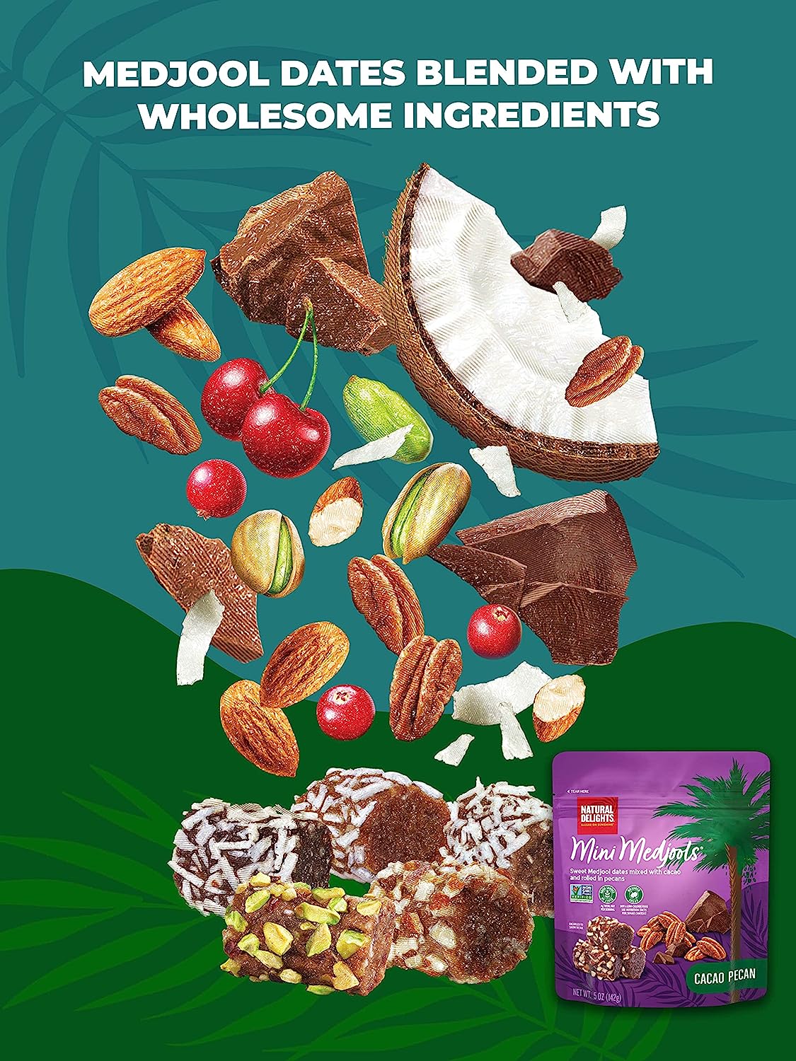 Natural Delights Cacao Pecan Mini Medjools Pouch (5 oz) | Great Snacks for Adults and Kids | Non-GMO Verified | On the Go Snack