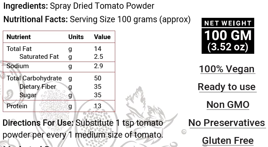 Zilli's Tomato Powder, Tamatar Ka Powder 10.58 oz (100g x 3 =300g), For Cooking, Baking, Skin, Face, Hair | Indian Spice No Preservatives, Vegan, Gluten Free | Tomate en polvo | Longer Shelf Life | Store in refrigerator