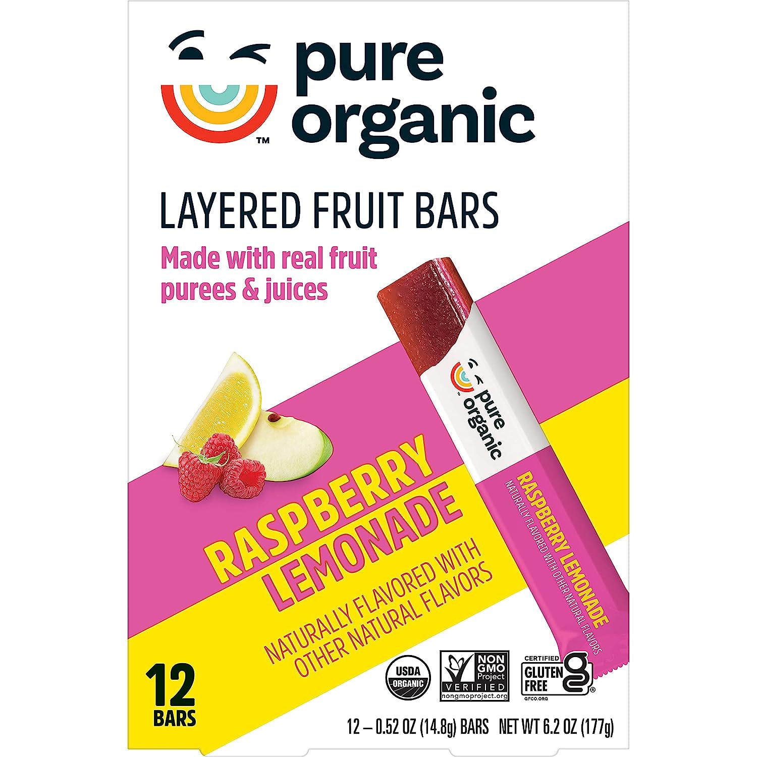 A Pure take on fruit snacks! Pure Organic Layered Fruit Bars are triple-layered, dual-flavored sweet and tart treats. Each snack bar is organic, Non-GMO Project Verified, vegan, gluten-free, kosher, and made with fruit and vegetable juices and purees. These fruit snacks have no artificial flavors and are crafted to be delightfully delicious for blissful and indulgent snacking; Loaded with wholesome ingredients, Pure Organic vegan snacks are individually wrapped and a pure joy to eat! Store in your pantry for a snack at home or take one with you wherever you go. Pack them in school lunches or enjoy them on hikes and camping trips.