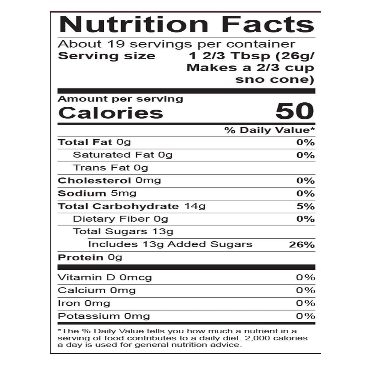 These delicious slushie syrups, made in small batches, are made with 100% PURE CANE SUGAR and other high quality ingredients. Make an Italian soda by adding these snowcone syrup flavors to your sparkling soda water. Add some pizazz to your coffee, tea, hot chocolate or any other beverage of your choice by throwing in a splash of the BEST shaved ice syrups out there. Create signature PARTY DRINKS for your next event, bbq or get-together by adding our snow cone flavors. Thrill the kiddos and the adults by jazzing it up with our signature shaved ice syrups!
