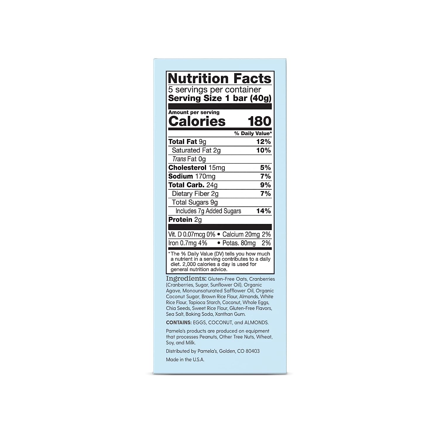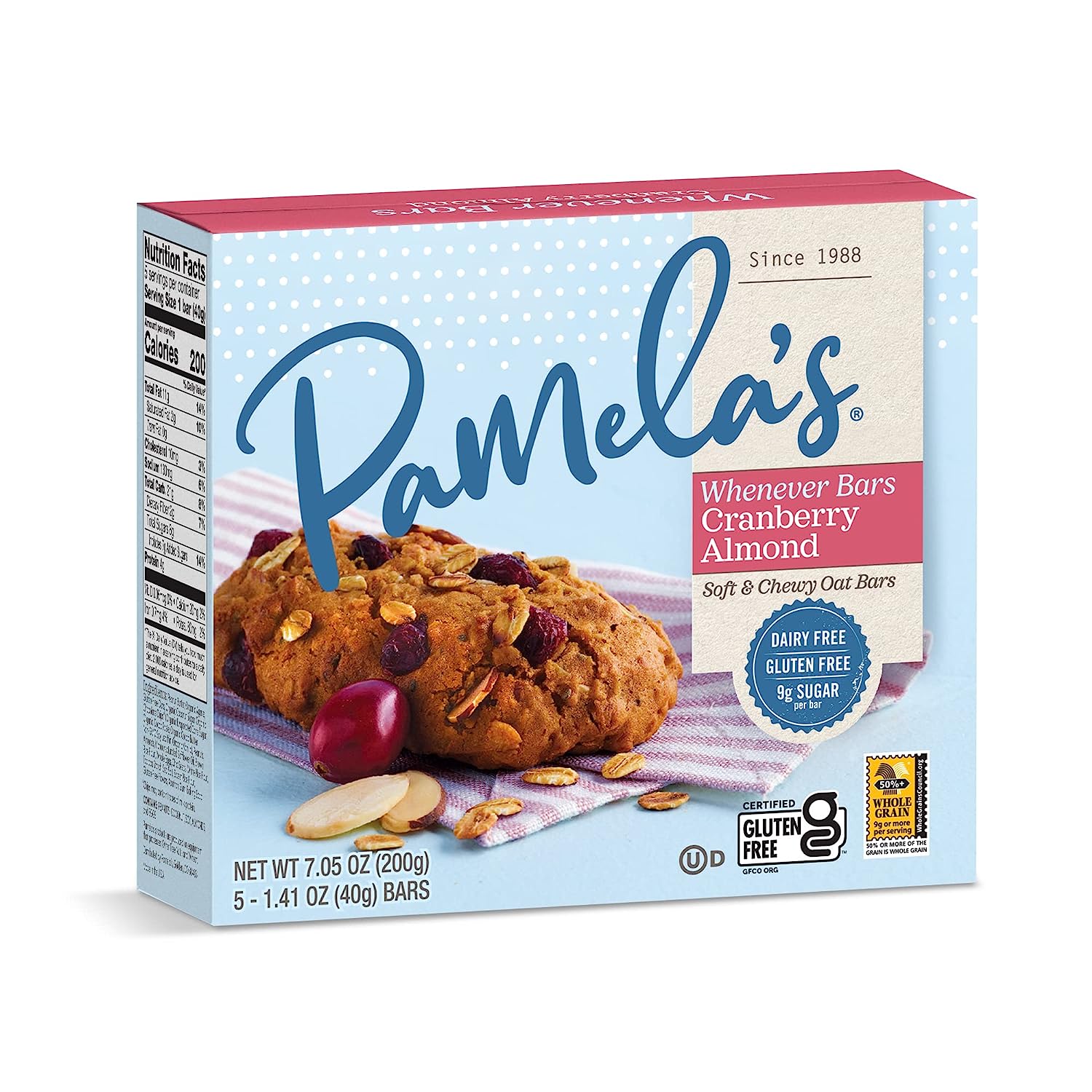 Delicious chunks of cranberries play with savory slivers of almond in Pamelas Oat Cranberry Almond Whenever Bars. Made with gluten-free oats, chia seeds and lightly sweetened with agave and coconut sugar, these bars offer a delightfully filling and great tasting snack whenever you need one.