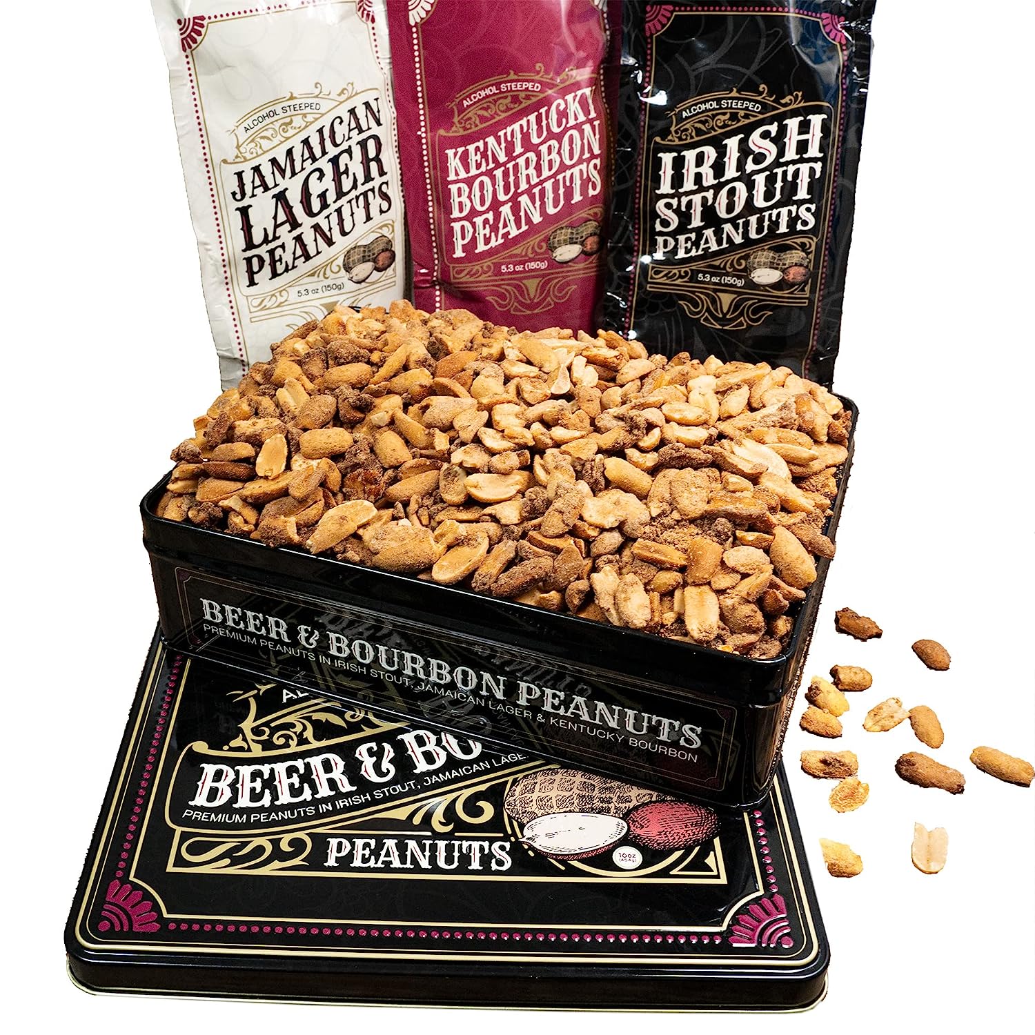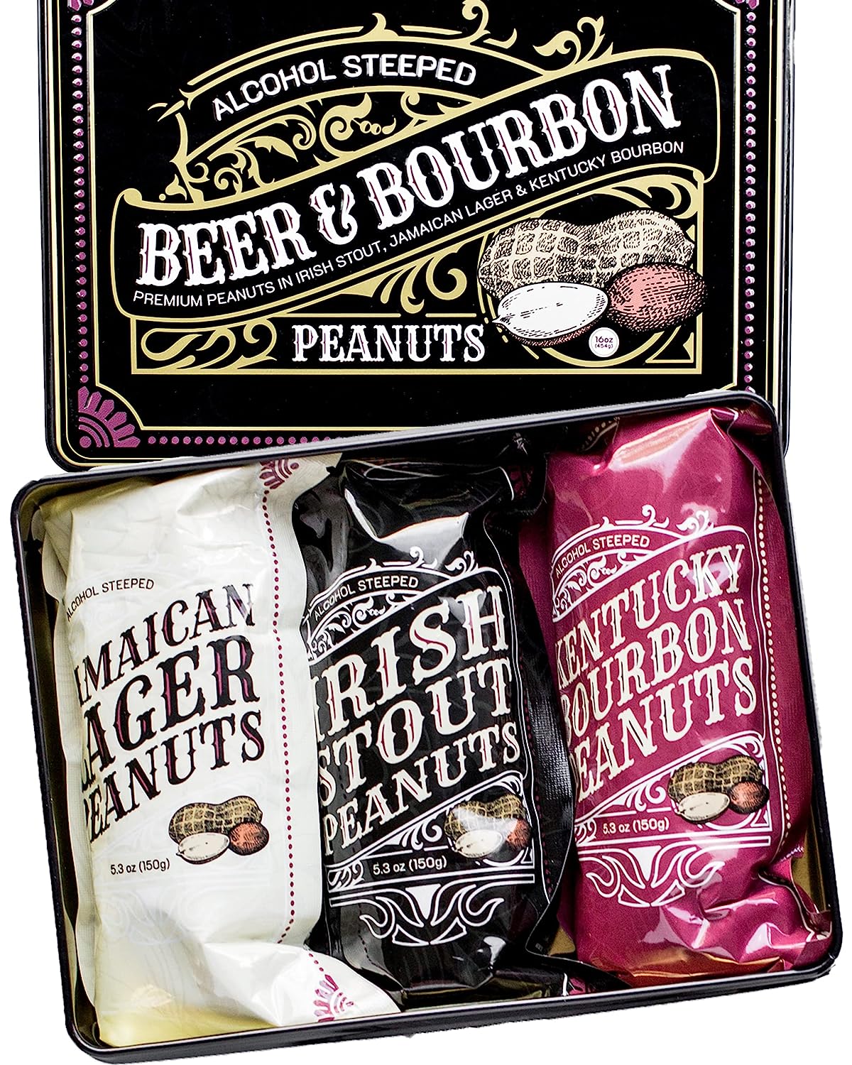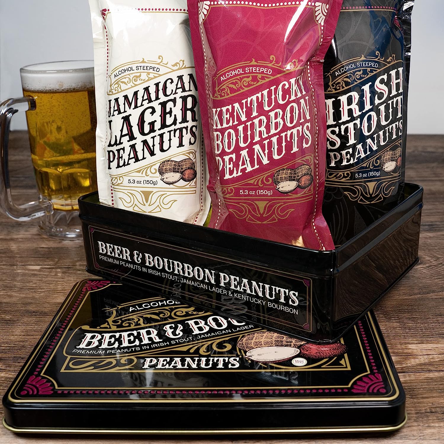 Nuts Gift Basket for Men, Unique Flavored Peanuts in a Cool Tin Gift Box, Great Gift for Him, Birthday Gift, Healthy Snack
