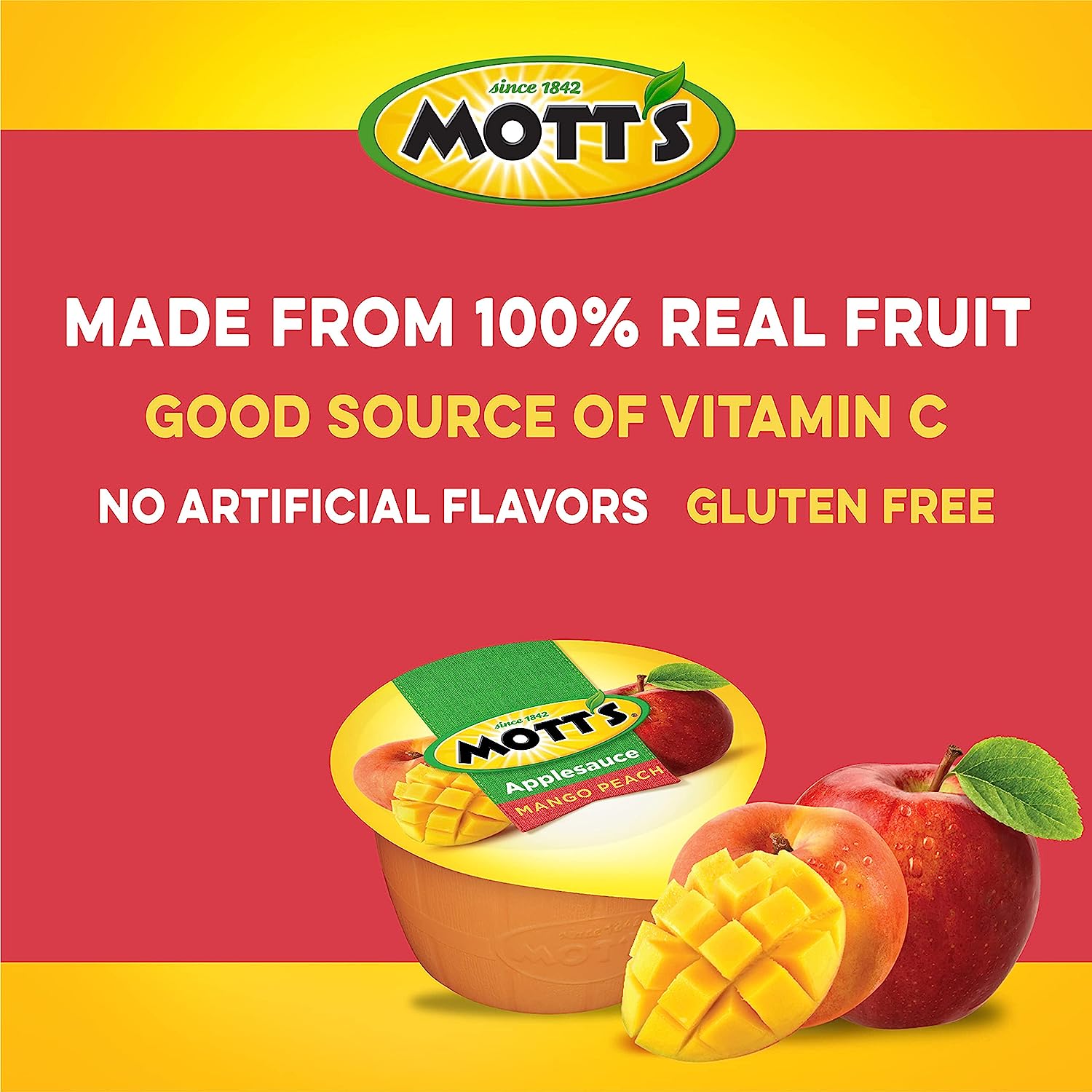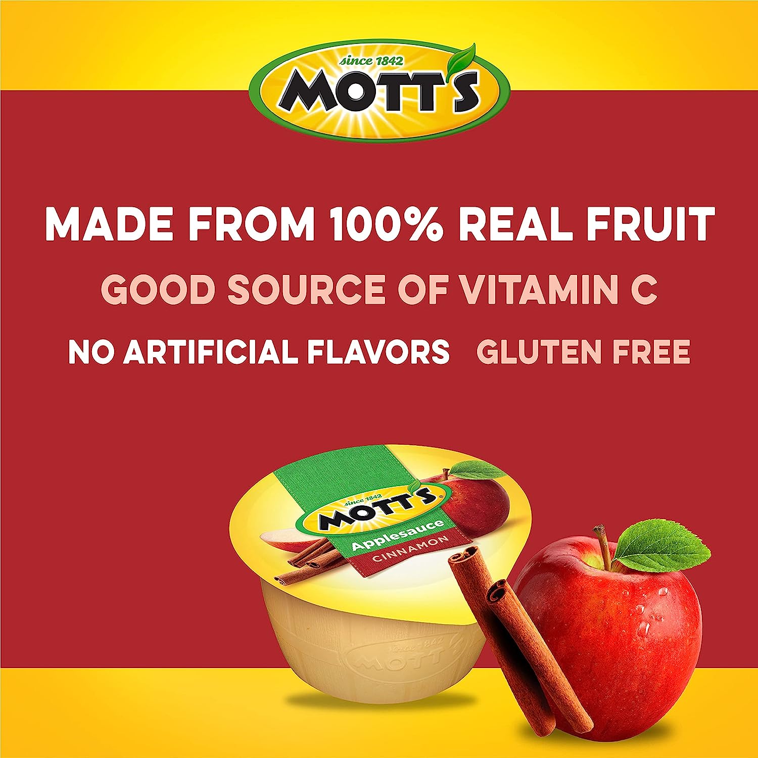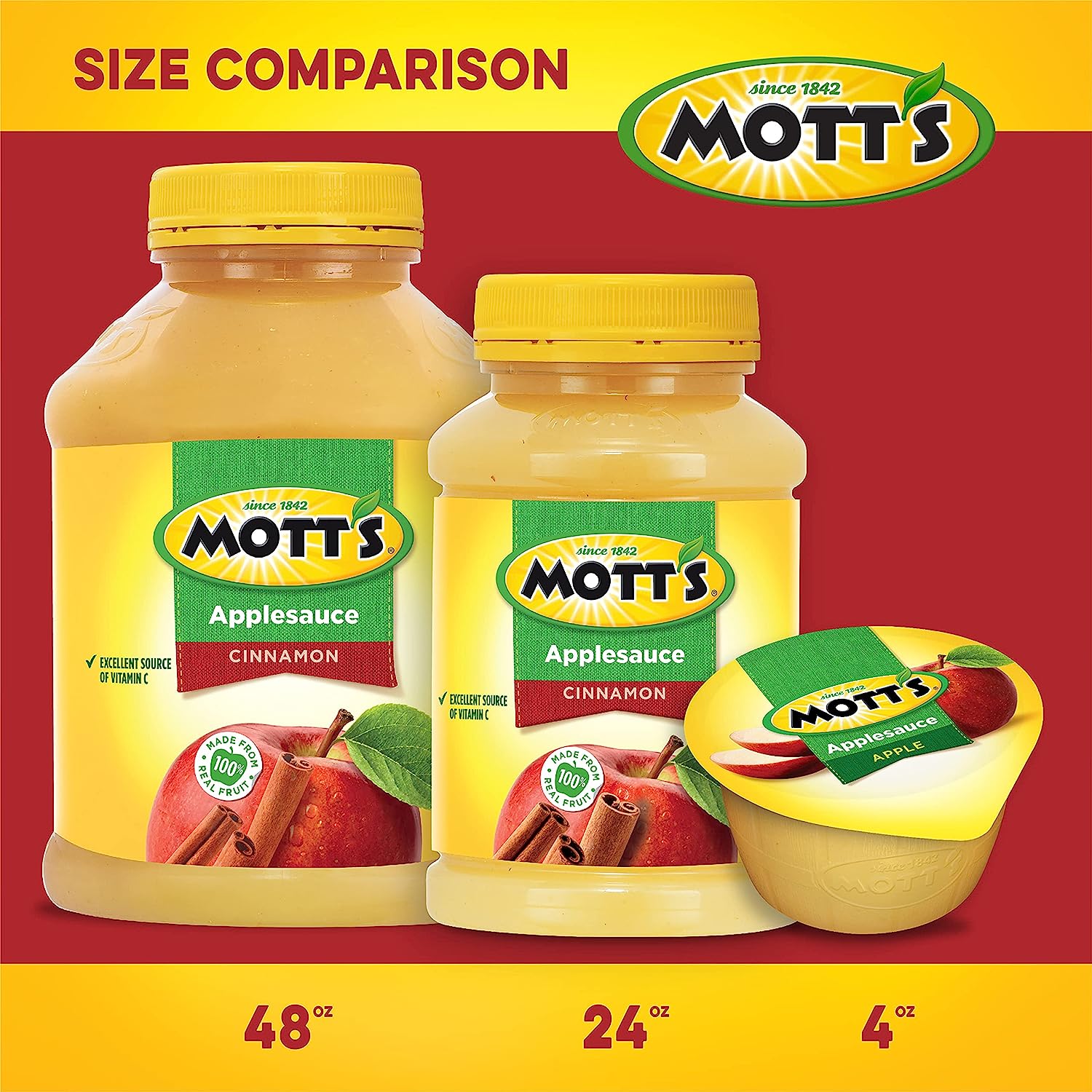 The original, delicious treat, Mott's Applesauce is the perfect snack or meal companion. It's a good source of Vitamin C and free of cholesterol. Bringing the best of the orchard to your household, Mott's helps families enjoy delicious fruit goodness every day. The apple juice and sauce brand is dedicated to giving moms easy ways to help their families be their very best. Mott's has a strong heritage and has been the trusted apple juice and sauce brand since 1842. Mott's hold the apples to a very high standard, that's why the products pack lots of delicious fruit flavor from ripe apples into every serving. Whether you're home with your family or on-the-go and in need of a snack, Mott's has a product for you. We also offer an extensive suite of flavors so you can add variety in your snacking. Mott's 100 percent Apple juice comes in refreshing flavors like Apple Cherry, Apple White Grape and Fruit Punch while sauce has options like Cinnamon and Mixed Berry so you'll be sure to find something that satisfies your taste buds. You won't find any artificial flavors in Mott's products, so you can feel good about making healthy choices.
