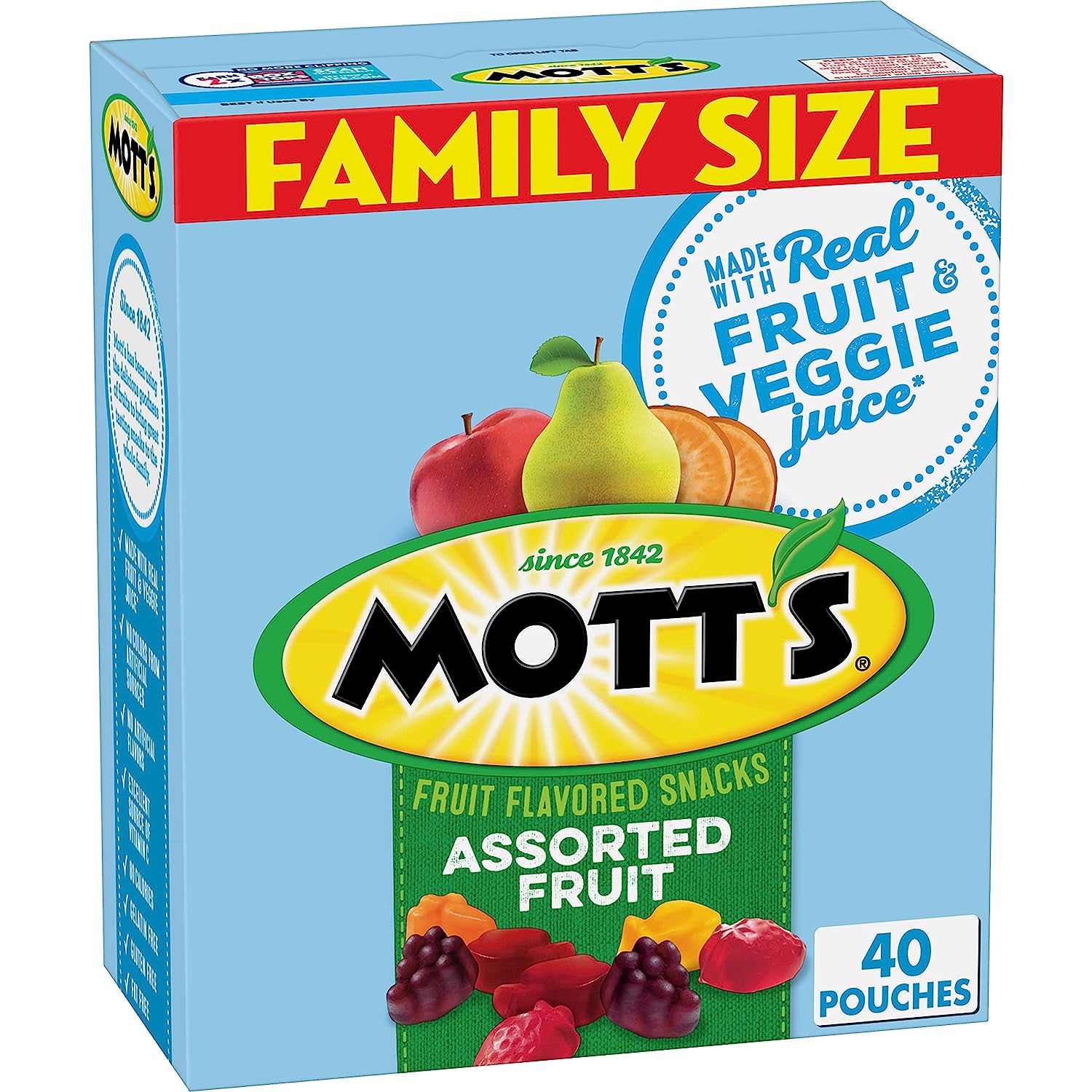 When you need a tasty snack for kids of all ages, choose the juicy goodness of Mott's Assorted Fruit Flavored Snacks! Not only are these bite-sized gummies wholesome and delicious, but they are also made out of real fruit and veggie juices. Plus, these gluten-free Fruit Flavored Snacks have 60% daily value of vitamin C per serving and no artificial flavors. You've finally found the perfect after-school snack that's a win for you and your kids! Individually wrapped for on-the-go convenience, Mott's Assorted Fruit Flavored Snacks pouches are a treat the whole family can enjoy. Contains 40 assorted fruit flavored snack pouches in total.