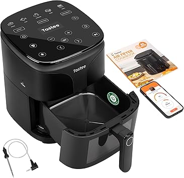 Tastee Ceramic Air Fryer, 8-in-1 Compact 5.5QT AirFryers, 450ÎçF Digital Airfryer Dehydrator with Smart Probe, 24 Presets One-touch Cooking, In-app Recipes with Window, Dishwasher-safe & Non-stick