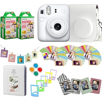 Fujifilm Instax Mini 12 Instant Camera + Pro Design Accessory Bundle with Protective Case, Magnetic Frames, Album, Frames Design Kit (40 Sheets) (Clay White)