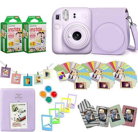 Fujifilm Instax Mini 12 Instant Camera + Pro Design Accessory Bundle with Protective Case, Magnetic Frames, Album, Frames Design Kit (40 Sheets) (Lilac Purple)