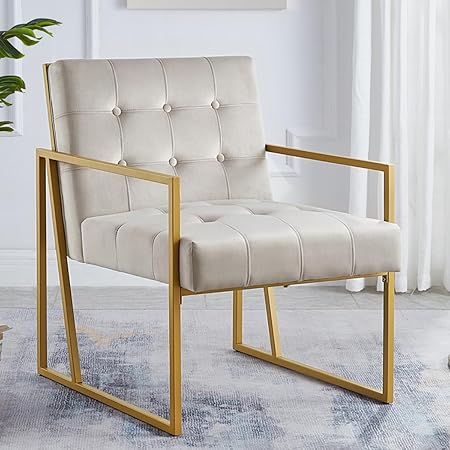 24KF Modern Taupe Velvet Button Tufted Accent Chair with Golden Metal Stand, Decorative Furniture Chairs for Living Room Bedroom - Taupe