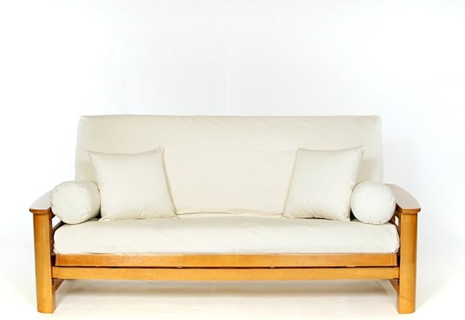 100% Cotton Full Size Futon Cover - Natural - Washable Zippered Sofa Furniture Bed Mattress Covers - Armless Couch Zipper Slipcover Protector/Encasement