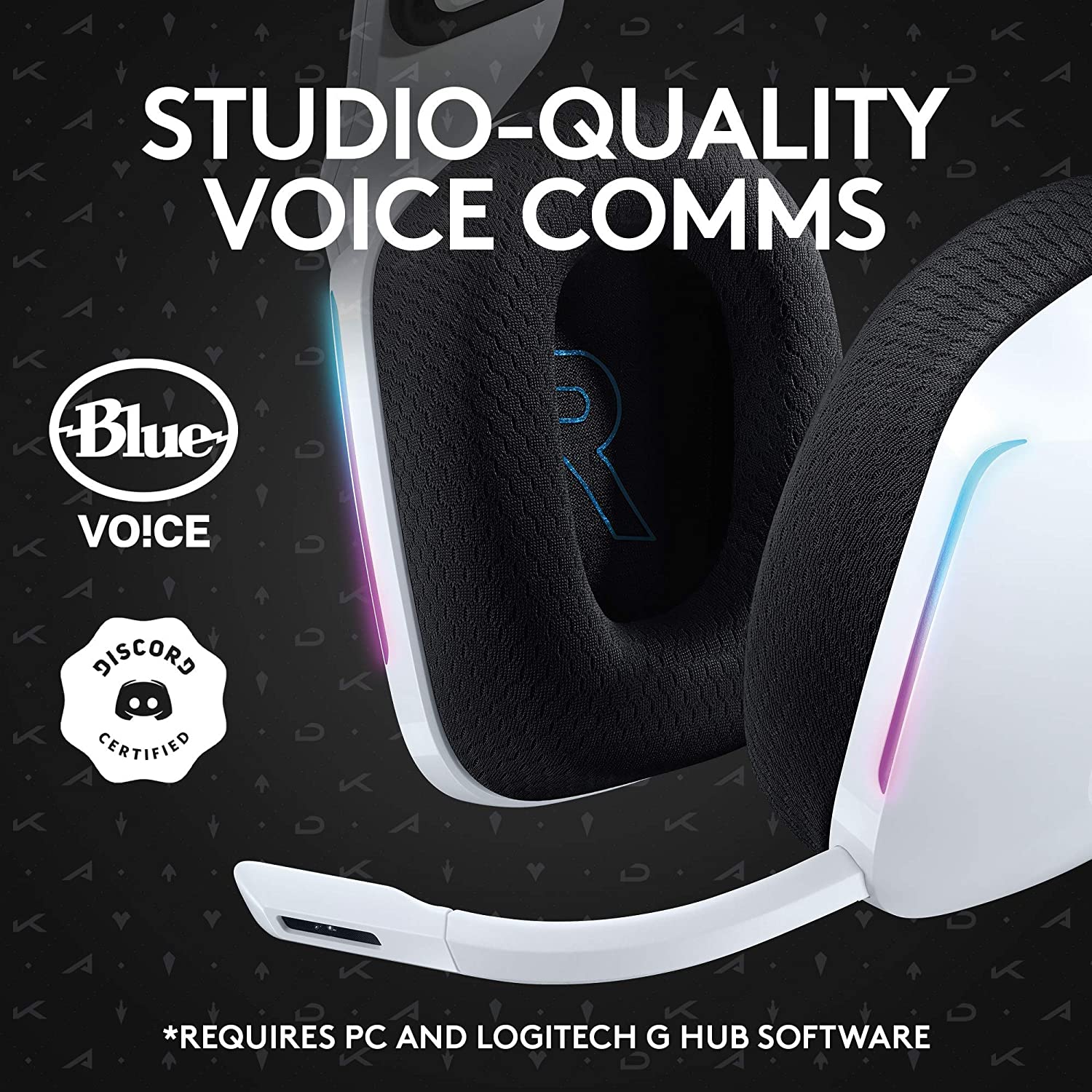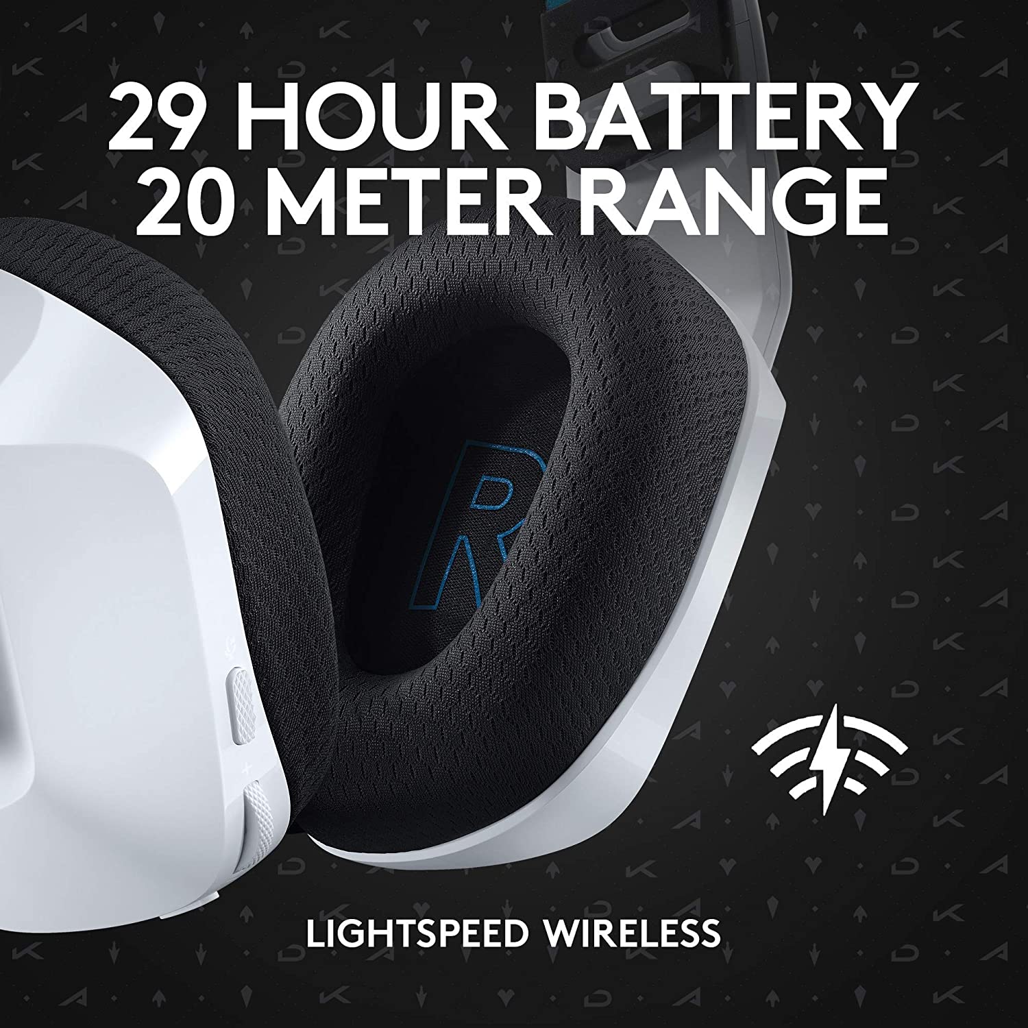 Meet G733, a gaming headset designed to suit your style. Embrace total wireless with 2. 4 GHZ Lightspeed wireless, featuring up to 20 m of range and up to 29 hours of battery life. Customize how you look and sound in G HUB with dual-zone, front-facing Lightsync RGB and Blue VO! CE real-time voice filters. G733 features advanced audio technologies, including 40 mm PRO-G audio drivers, internal acoustic chambers, and DTS Headphone: X 2. 0. Play your way with four colorways to choose from and play with comfort with a comfortable, reversible headband, dual-layer memory foam earcups, and a lightweight headset that weighs just 278 g.