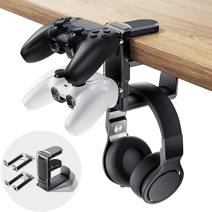 3-in-1 PC Gaming Headset&Controller Holder-PC Gaming Headset Stand•_ÎAdjustable Clamp-on Headphone Holder•_ÎController Headset Stand Black