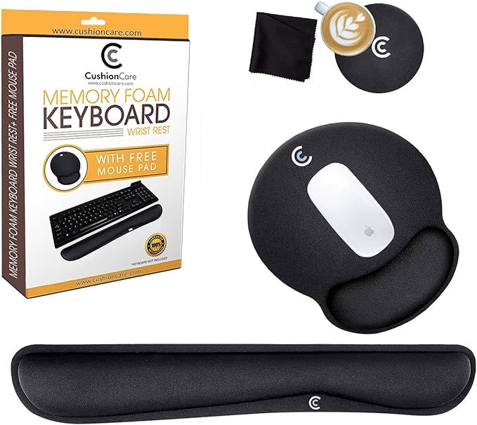 4pc Wrist Rests for Keyboard and Mouse Pad Set - Memory Foam Cushion, Black - Ergonomic Wrists Hand Arm Rest Support for Laptop Computer Desk and Gaming - Carpal Tunnel Syndrome Relief