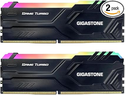 †—�RGB DDR4 RAM†—•GIGASTONE Game TURBO 32GB Kit (2x16GB)DDR4 3200MHz PC4-25600 CL16-18-18-40 Intel XMP 2.0 AMD Ryzen 1.35V UDIMM 288 Pin Unbuffered Non ECC High Performance Gaming Desktop Memory - Black