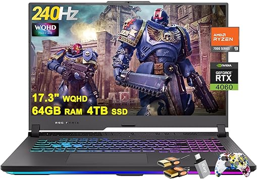 ASUS ROG Strix G17 G713 Gaming Laptop 17.3" WQHD IPS 240Hz AMD 12-Core Ryzen 9 7845HX (>i9-12900H) 64GB RAM 4TB SSD GeForce RTX 4060 8GB USB-C RGB Backlit Fast Charging Win11 w/ICP Accessory