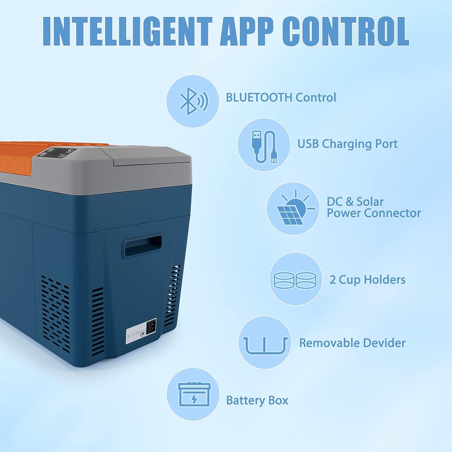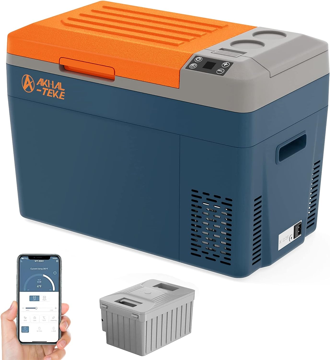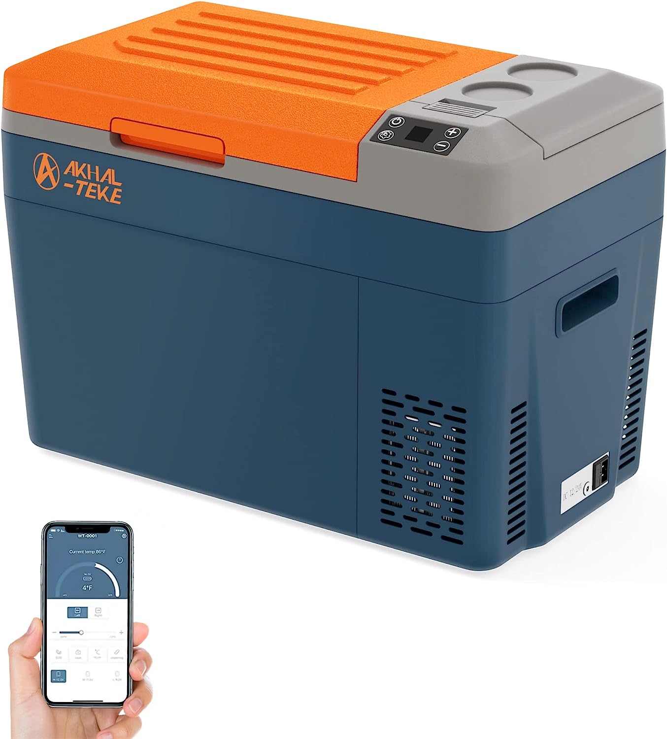 AKHAL-TEKE 12 Volt Refrigerator, 24 Quart(23L) Portable Refrigerator Freezer(-7℉~50℉) APP Control Car Fridge Cooler with Compressor 12/24V DC and 110-240V AC for Car, Camping and Home Use