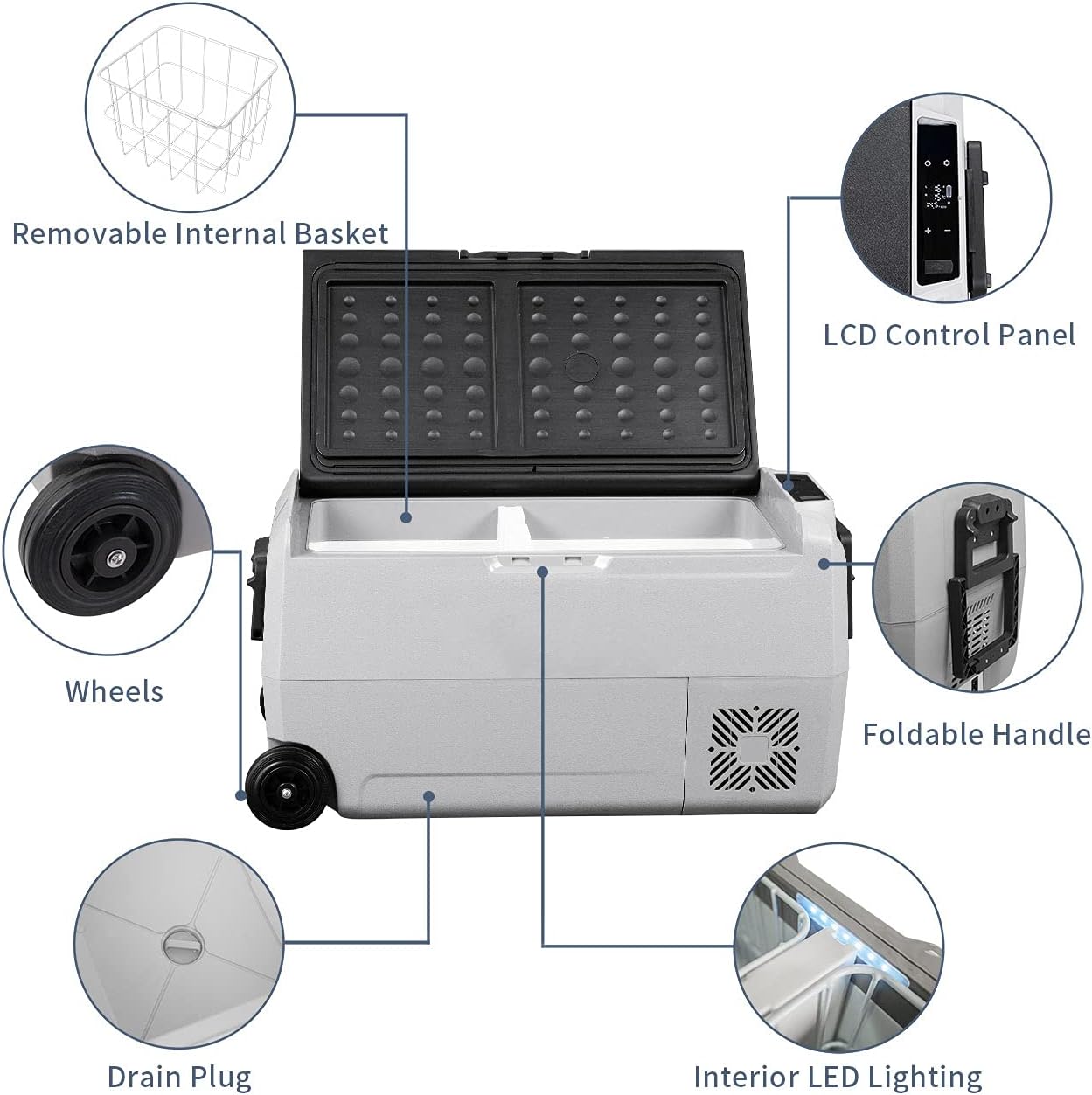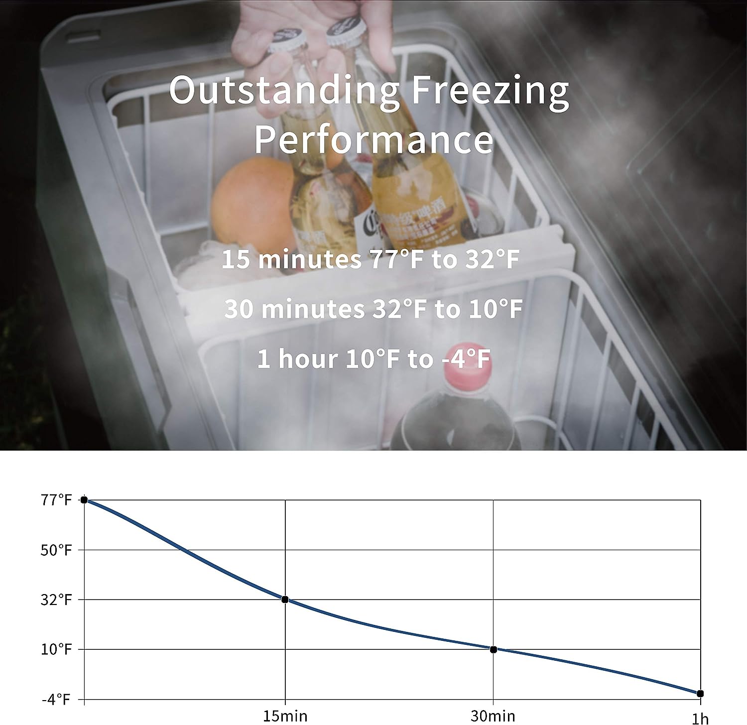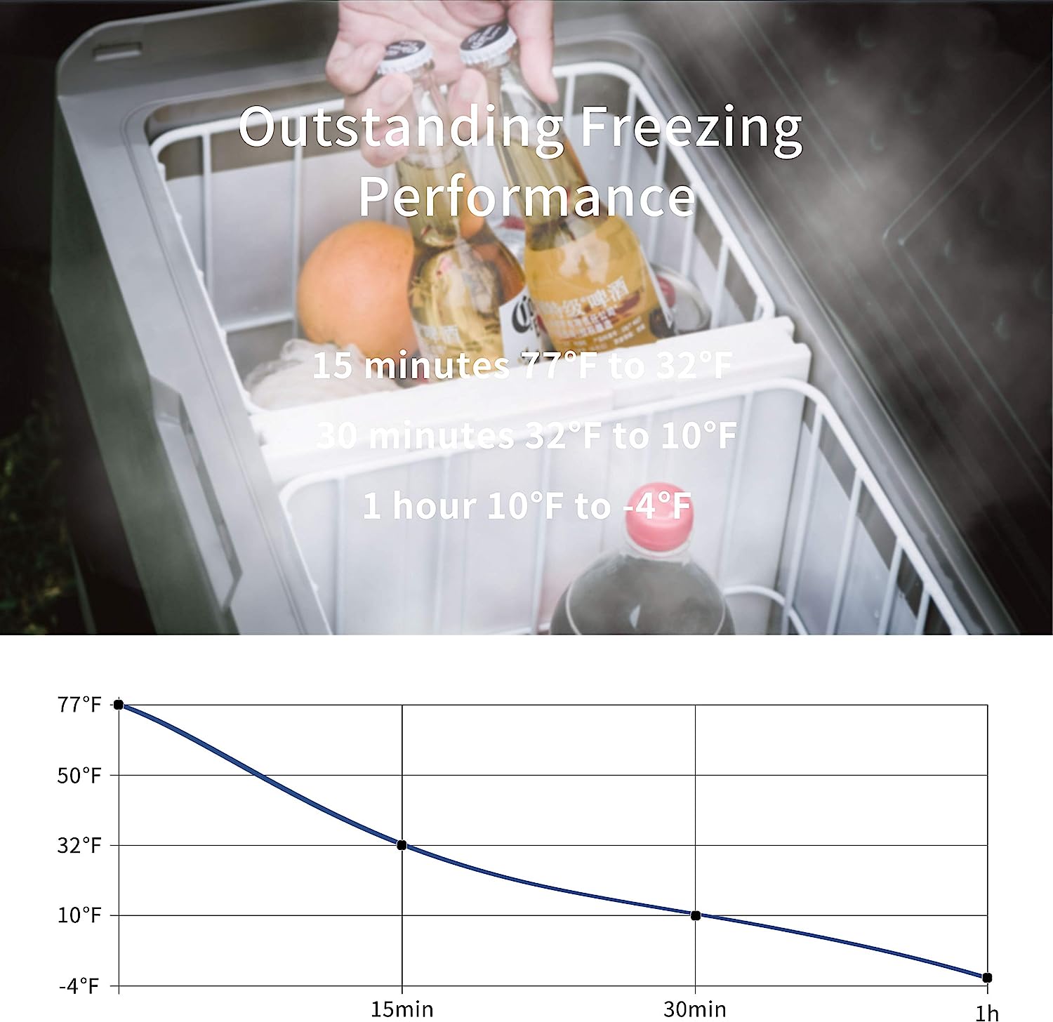• ❄ FREEZES WITHOUT ICE: -4°F(-20°C) to 50°F(10°C) powerful chilling performance.You can adjust the temperature be a fridge for left zone and freezer for right zone. Run great with your small solar system as well.