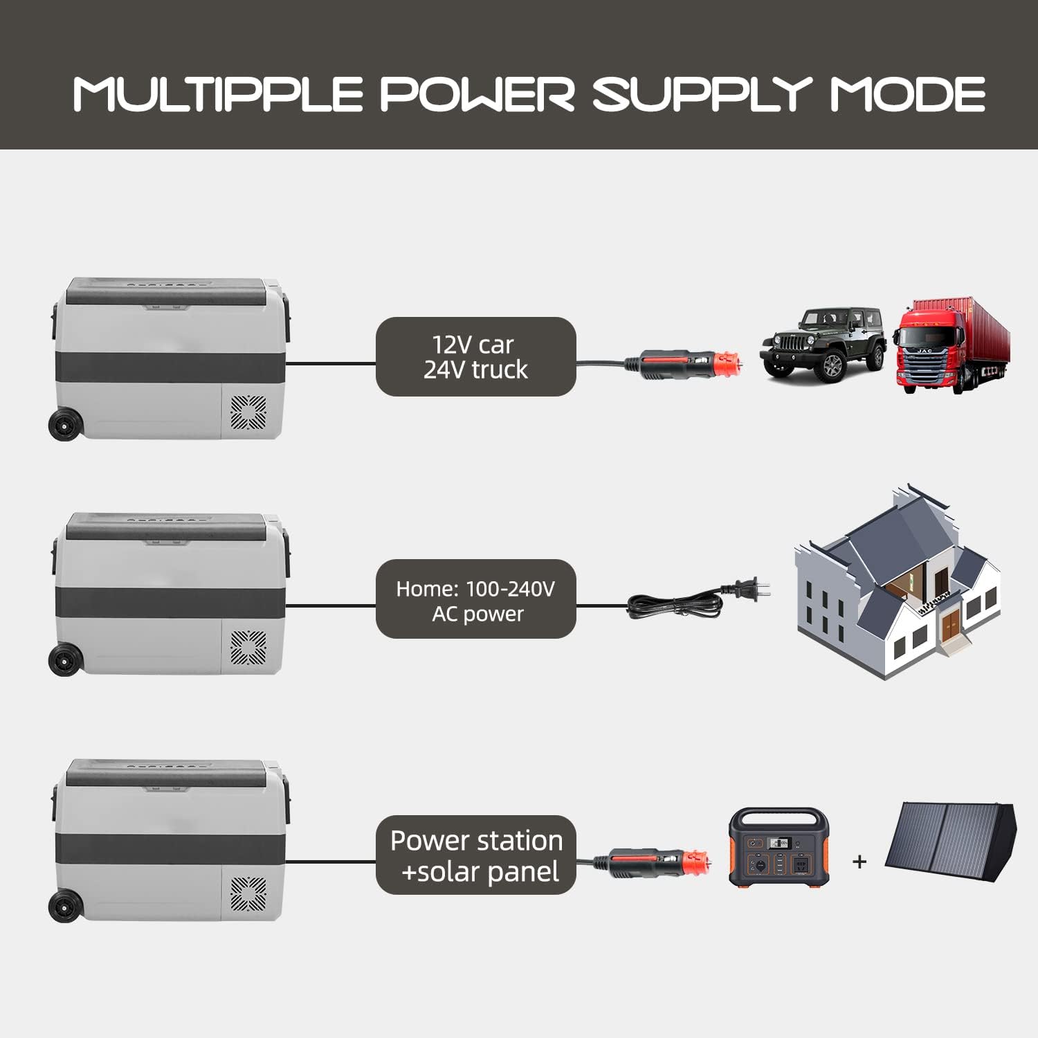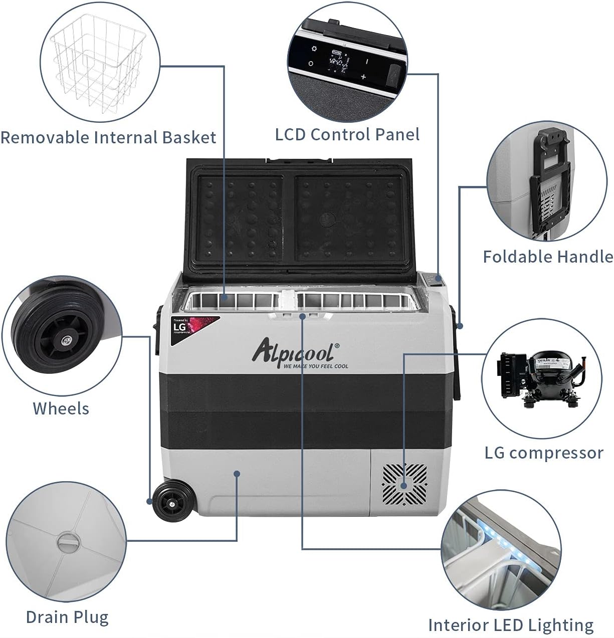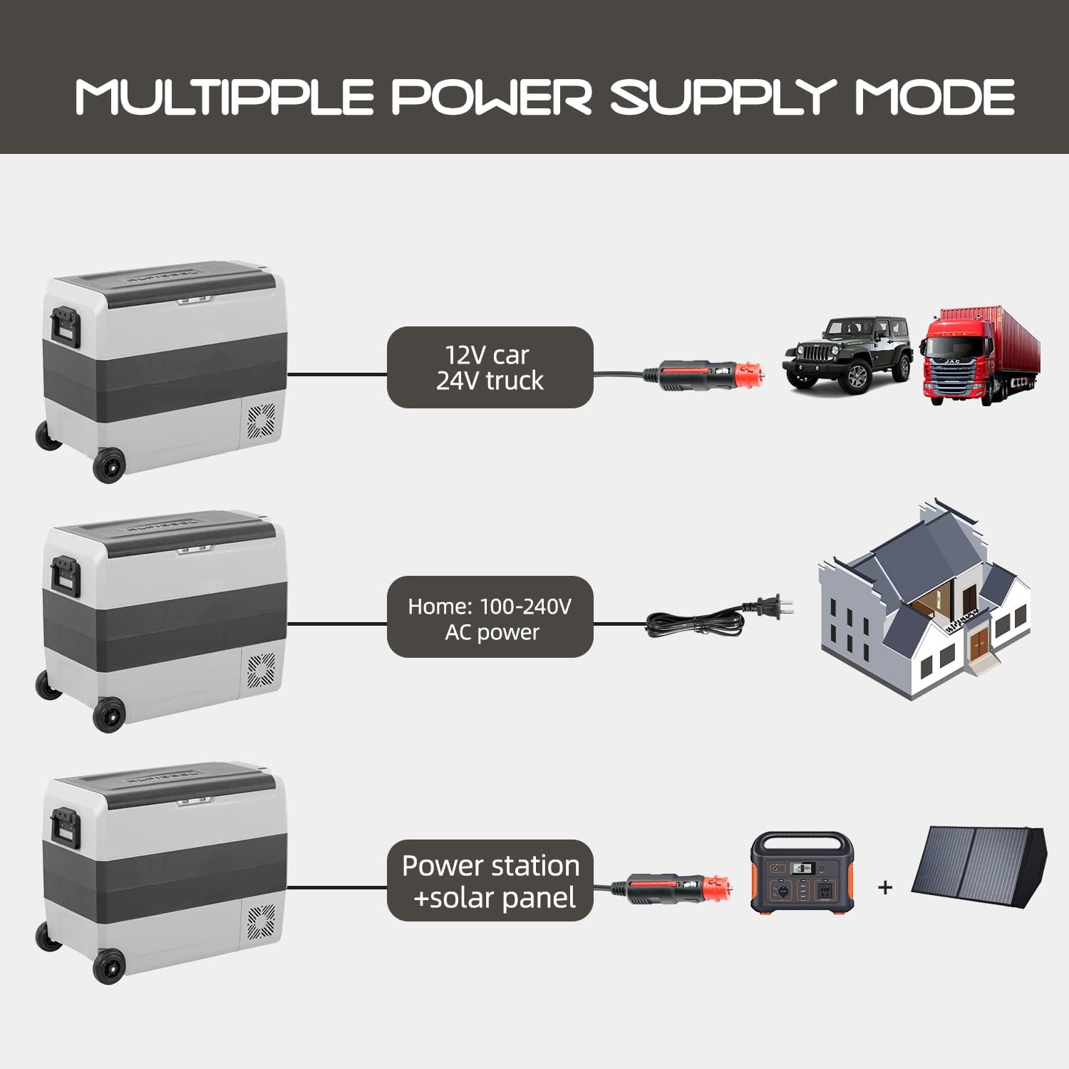 • ❄ FREEZES WITHOUT ICE: -4°F(-20°C) to 50°F(10°C) powerful chilling performance.You can adjust the temperature be a fridge for left zone and freezer for right zone. Run great with your small solar system as well.