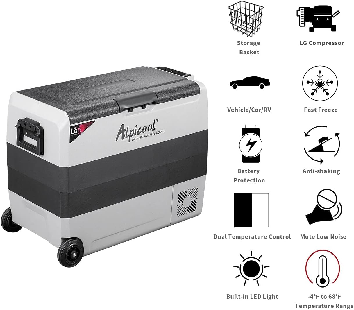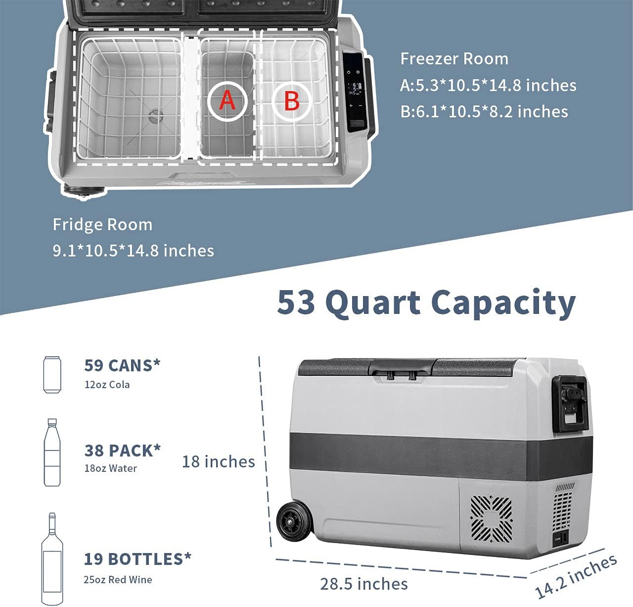 Alpicool T50 Dual Temperature Control 12 Volt Refrigerator 53 Quart Portable Car Fridge Freezer (-4°F~68°F) for Truck, RV, Boat, Camping and Travel