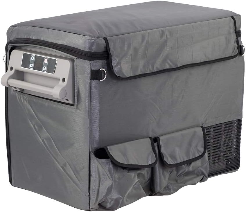 Now you can protect and provide additional insulation for your Alpicool CF45 portable freezer with an Alpicool CF45 insulated flexible transit bag. The transit bag comes custom tailored with openings for your freezer's handle grips, air vents, and power cords to allow operation with the bag in place.