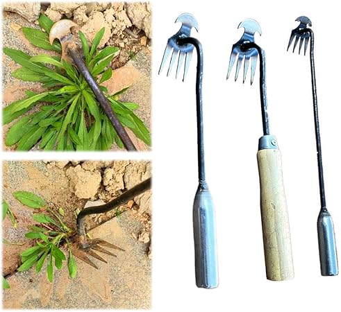2024 Upgrade Weeding Artifact Uprooting Weeding Tool, Premium Gardening Hand Weeder Tools Weeding Artifact Uprooting Weeding Tool 4 Teeth Manganese Steel Removal Weed Tool (A+B+C)