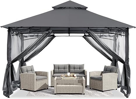 ABCCANOPY Gazebos for Patios 8x8 - Outdoor Steel Frame Gazebo with Mosquito Netting for Lawn Backyard Garden Deck (Dark Gray)