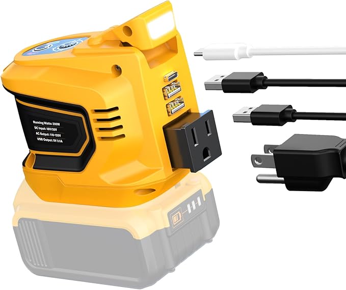 200W Portable Power Inverter for DeWALT 20V, Ecarke Outdoor Generato Battery Converter with 2 USB&LED&AC Battery Powered Outlet, Convert DC 18V/20V to AC 110V-120V Portable Power Station(Tool Only)