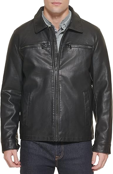 Dockers Mens James Faux Leather Jacket - Classic Motorcycle Zip-up Jacket