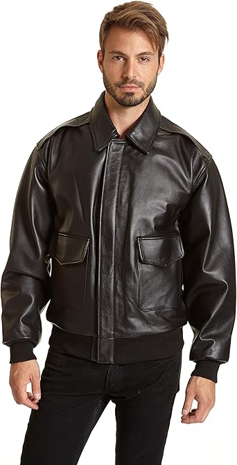 Excelled Men's Big and Tall Leather Flight Jacket, Black, 3XL
