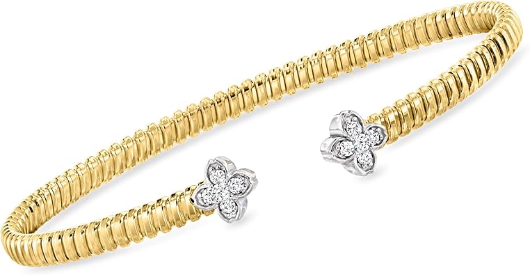 Ross-Simons Charles Garnier Tubogas .20 ct. t.w. CZ Flower Cuff Bracelet in 18kt Gold Over Sterling With Sterling Silver. 7.5 inches
