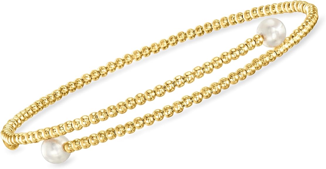 RS Pure by Ross-Simons 4-5mm Cultured Pearl Beaded Bypass Cuff Bracelet in 14kt Yellow Gold. 7 inches