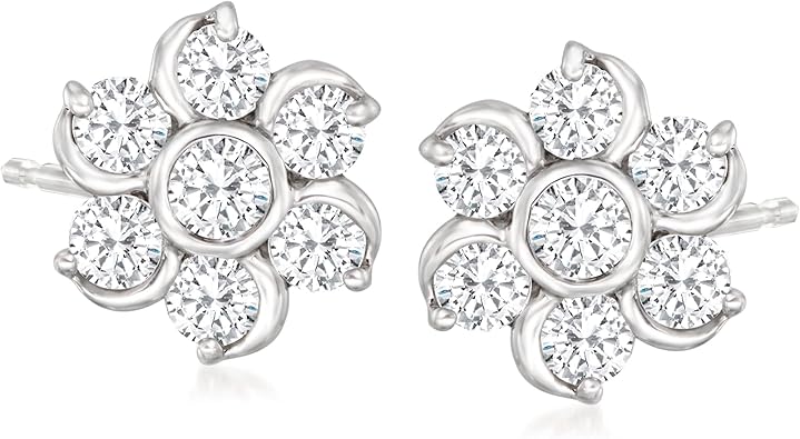 Ross-Simons 1.00 ct. t.w. Diamond Flower Stud Earrings in 14kt White Gold