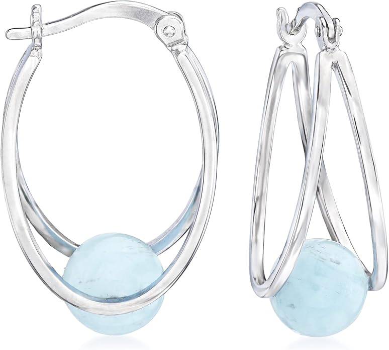 Ross-Simons Gemstone Double Hoop Earrings in Sterling Silver