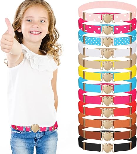 12 Pieces Girl Belts Heart Waist Belt Adjustable Elastic Stretch Buckle Uniform Belt for Teen Kids Dresses Jeans, 12 Styles (Size 17-32 Inch)