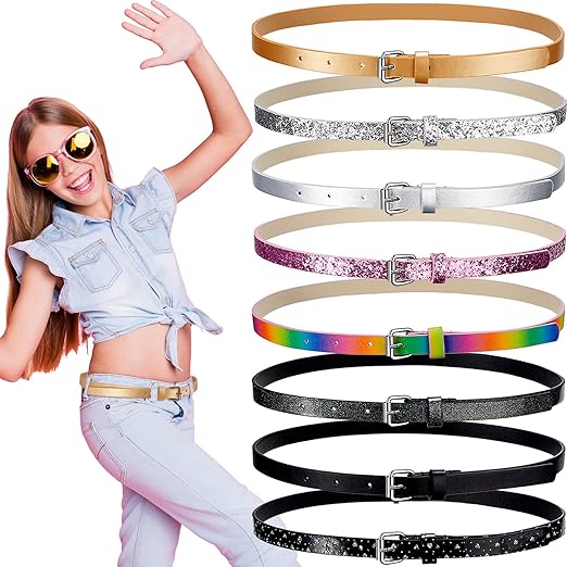 8 Pieces Girls Dress Belts Skinny Waist Rainbow Belt Silver Kids Belts for Girls