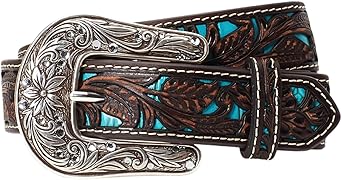 ARIAT Girls' Floral Overlay Belt with Bright Blue Underlay and Rhinestone Accents