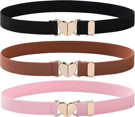 AWAYTR Kids Elastic Belt for Girls - Adjustable Toddler Heart Buckle Stretch Belts for Boys Girls