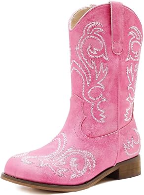 Cowgirl Boots for Girls Boys Kids Cowboy Riding Boots Western Embroidery Mid-Calf Square Toes Girl Shoes Birthday Party Daily Wear Toddler/Little Kid/Big Kid