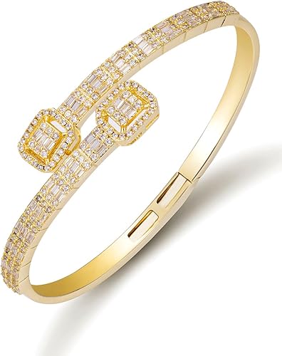 LuxeFlex Iced Out Diamond-Studded Butterfly Cuff Bracelet for Women, Men, and Teen Girls - 14K Gold Plated Bangle with Baguette CZ Stones, Perfect Birthday or Graduation Jewelry Gift for Best Friends