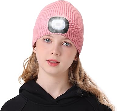 MELASA LED Beanie for Kids, USB Rechargeable Hand Free Hat with Light Winter Night Gifts for Kids Boys Girls in Dark Outdoor