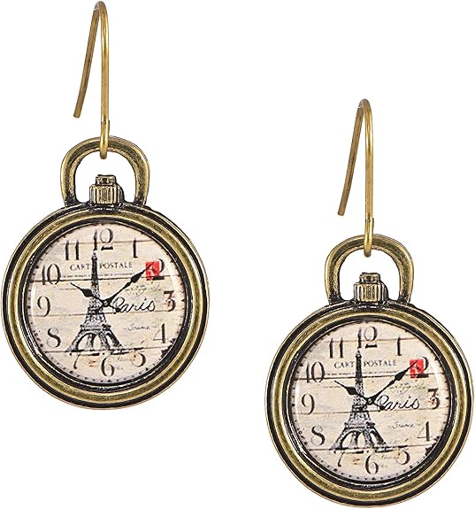 Whimsical Charm Dangle Earrings Eiffel Tower Pocket Watch (Eiffel Tower Pocket Watch)
