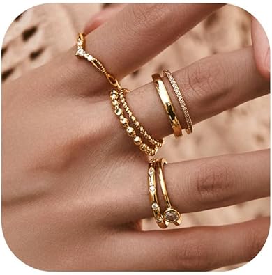 6PCS Stackable Gold Rings for Women Non Tarnish Trendy Dainty 14K Gold Filled Stacking Cubic Zirconia Thumb Ring Set Pack Statement Chunky Band Rings Promise Engagement Rings Size 6-10