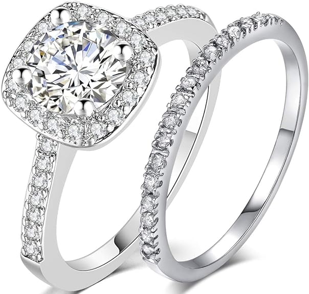 Jude Jewelers Silver Rose Gold 1.5 Carat Wedding Engagement Eternity Bridal Ring Set